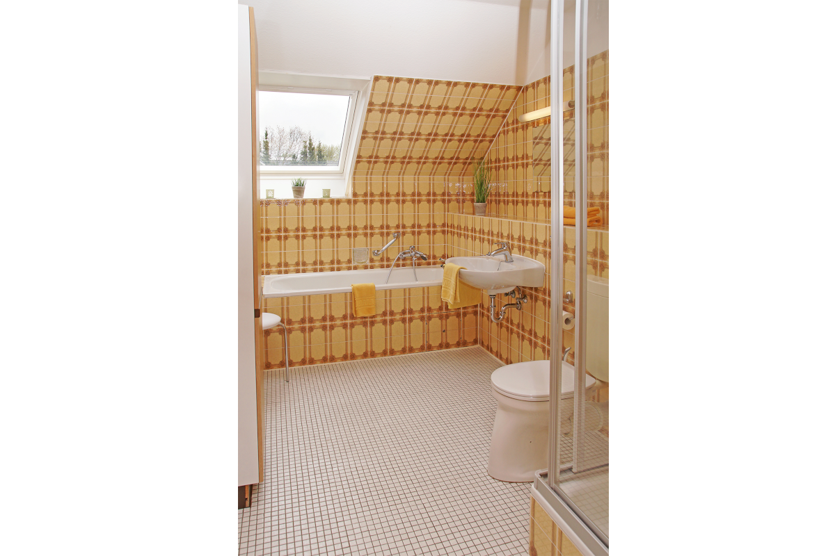 Im Bad finden Sie eine Badewanne und eine Dusche sowie einen Wickeltisch.